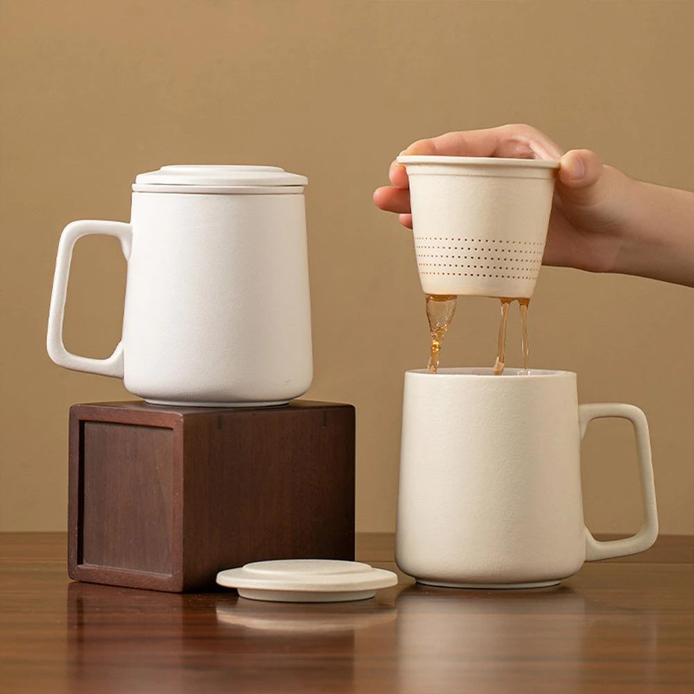 Jimi 集米 茶水分離杯 陶瓷辦公家用泡茶杯 簡約帶蓋過濾茶杯 個人專用泡茶杯子 送人禮品
