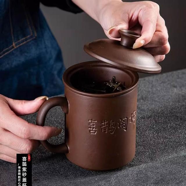 Jimi 集米 主人杯 紫砂杯 茶水分離杯 帶蓋紫砂水杯 單泡茶杯 喝茶過濾杯