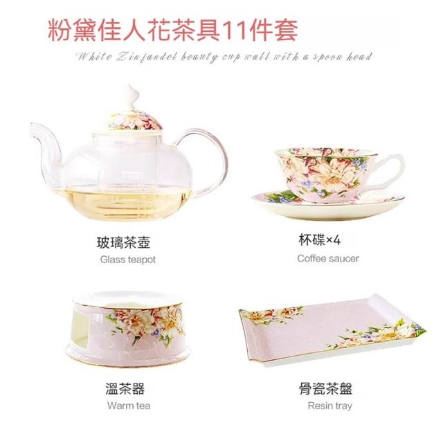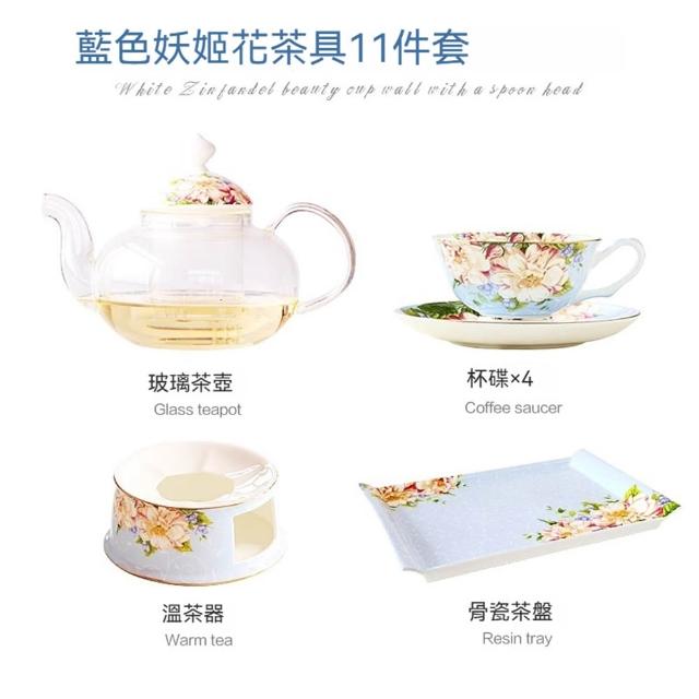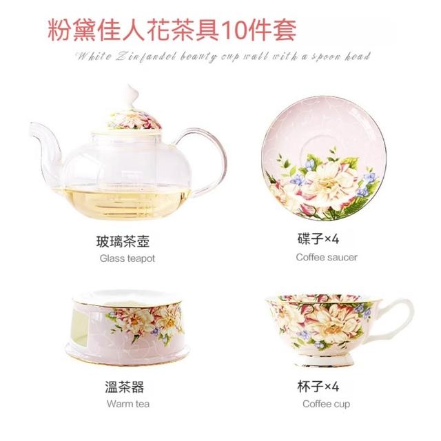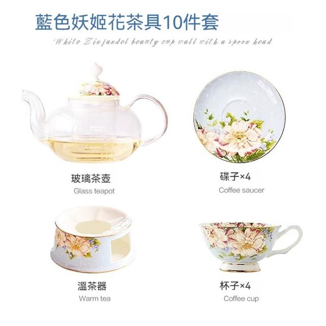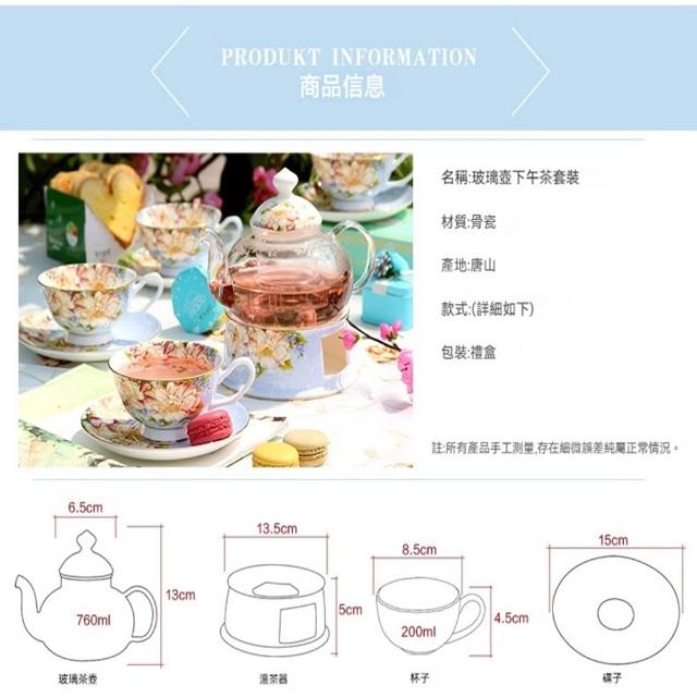 Jimi 集米 花茶杯 水果茶壺套裝 陶瓷下午茶茶具套裝 英式茶壺茶杯 家用蠟燭加熱茶壺 禮盒裝