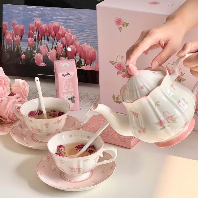 Jimi 集米 可愛粉紅玫瑰兔茶具 陶瓷茶壺組 法式下午茶杯碟茶具 伴手禮 禮盒裝