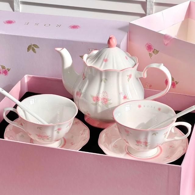 Jimi 集米 可愛粉紅玫瑰兔茶具 陶瓷茶壺組 法式下午茶杯碟茶具 伴手禮 禮盒裝