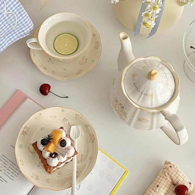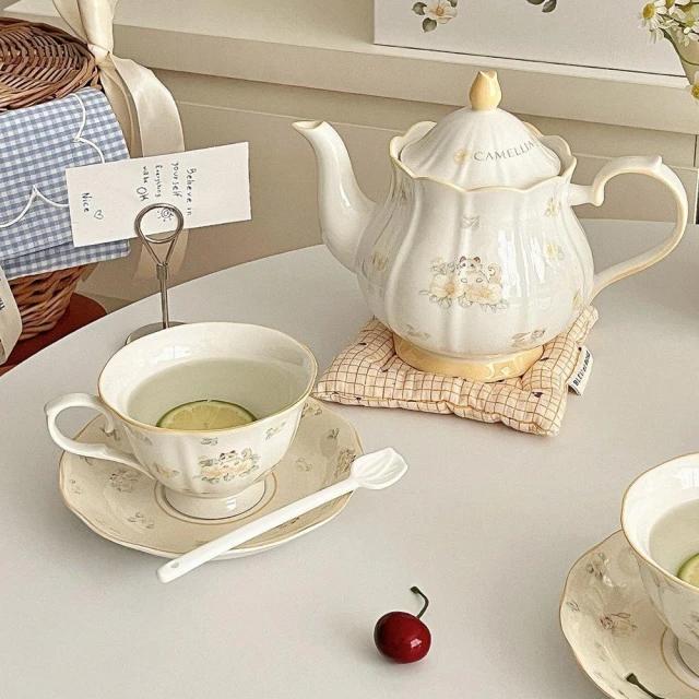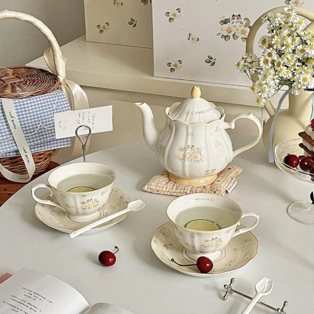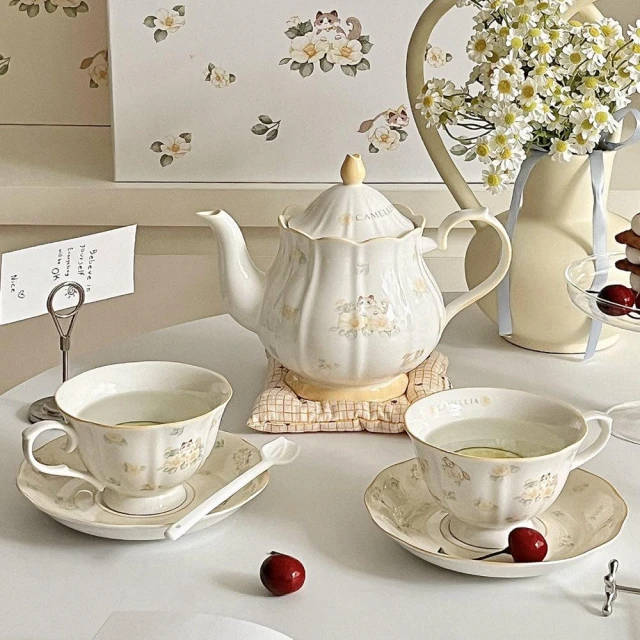 Jimi 集米 法式山茶花茶具 貓咪陶瓷茶壺套裝 下午茶杯茶碟 生日禮物 禮盒裝