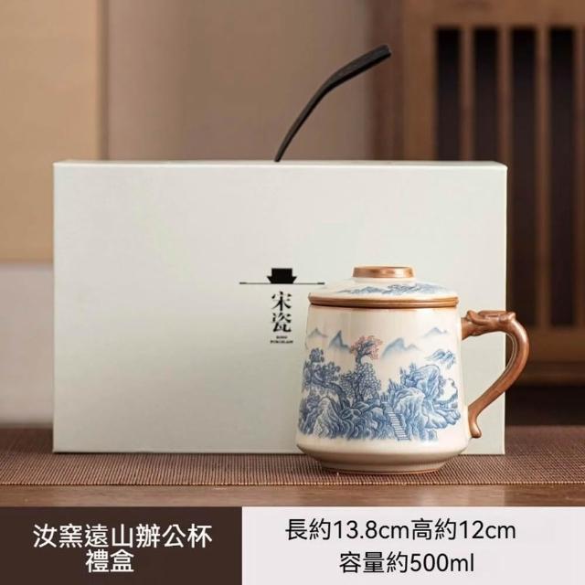Jimi 集米 汝窯開片纏枝蓮辦公杯 過濾馬克杯 陶瓷帶蓋茶杯 茶水分離泡茶杯 水杯 禮盒