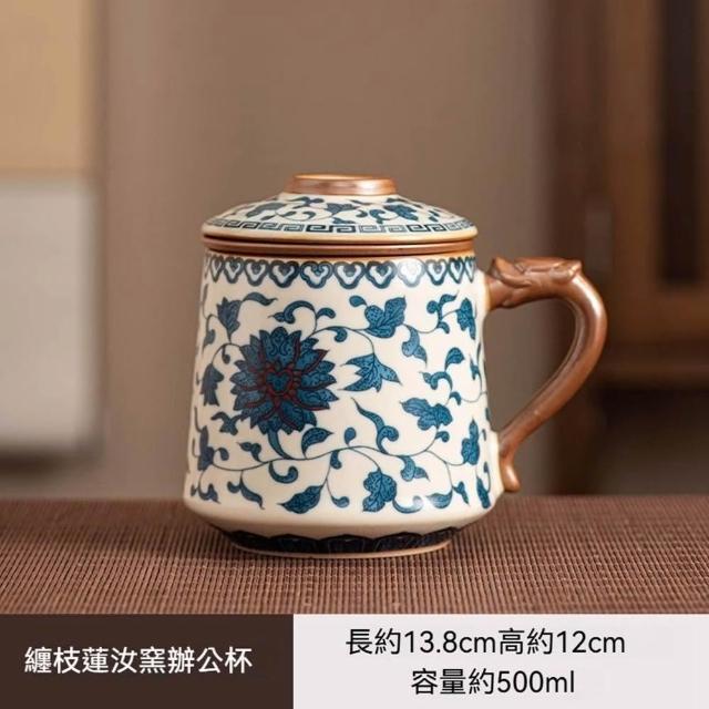 Jimi 集米 汝窯開片纏枝蓮辦公杯 過濾馬克杯 陶瓷帶蓋茶杯 茶水分離泡茶杯 水杯 禮盒