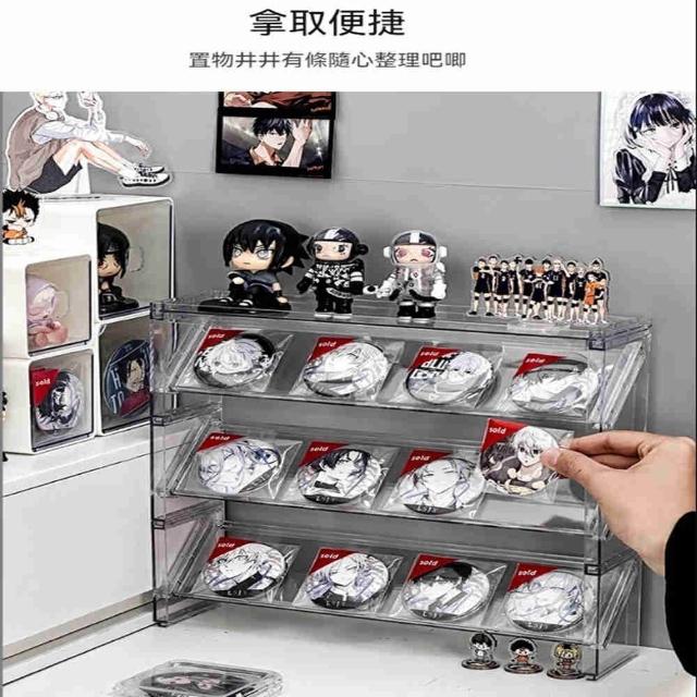Jimi 集米 收納盒 方形吧唧收納盒 透明亞克力 階梯式桌面展示架 谷子動漫周邊徽章立牌