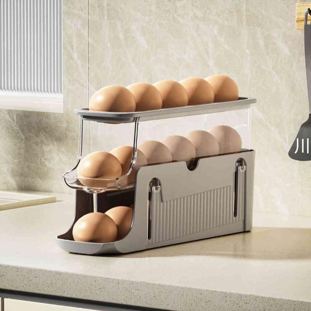 Jimi 集米 雞蛋收納盒 固定滑梯式 自動滾落 冰箱側門用 雙層蛋托