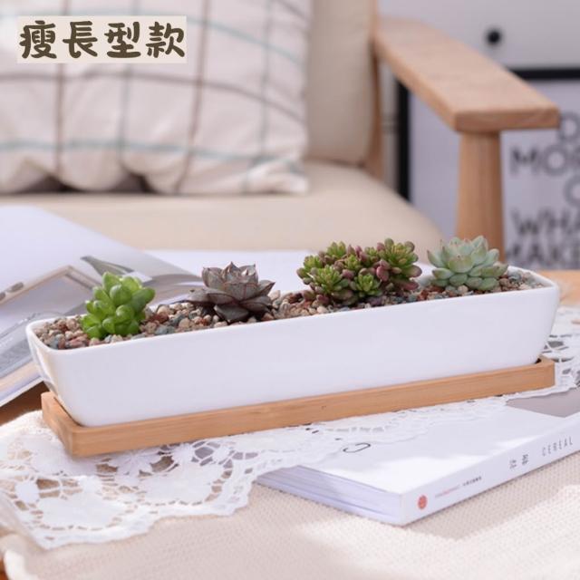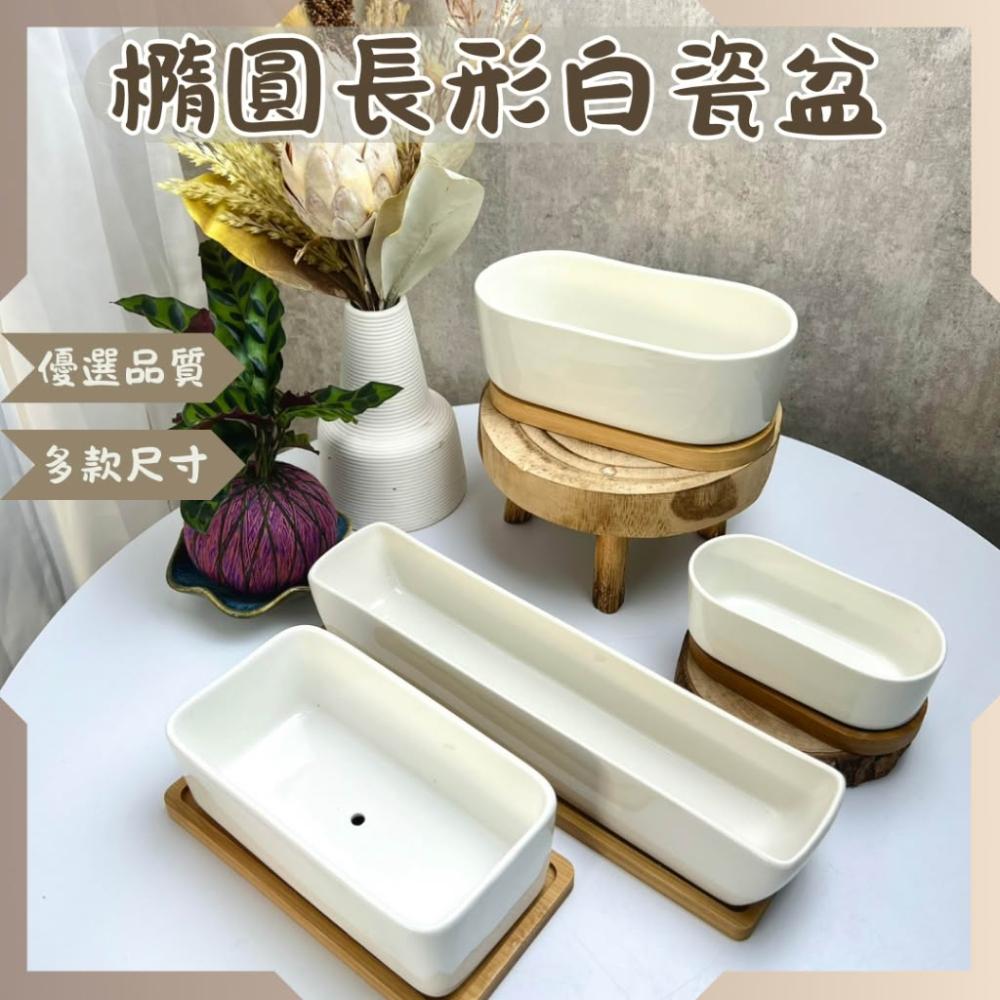 沐晨植物園|白瓷花盆 白瓷 長方形白盆 橢圓形白盆 多肉盆 瘦長型 白瓷花盆 多肉花盆 橢圓陶盆 多肉盆器盆