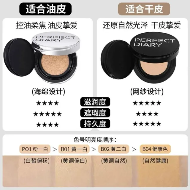 Perfect Diary 完美日記買一送一 精華氣墊粉底液+補充 完美日記 Perfect Diary 氣墊粉餅 剔透柔霧 鎖妝氣墊 粉餅 粉底液
