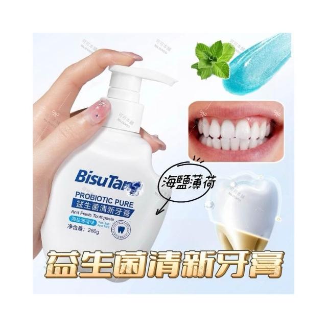 益生菌清新牙膏 海鹽薄荷味 壓汞式牙膏 用量超省 牙膏 牙膏乳 清涼牙膏 薄荷牙膏