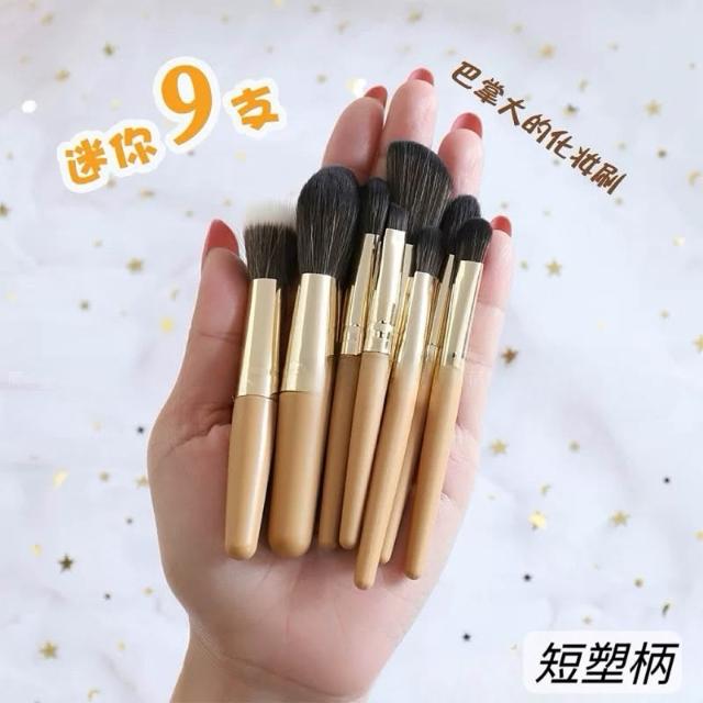 木柄迷你9支便攜化妝刷 送收納包 mini手掌大小 化妝刷具 眼影刷 腮紅刷 暈染刷 刷具套組