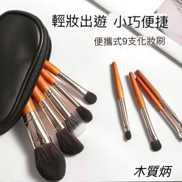 木柄迷你9支便攜化妝刷 送收納包 mini手掌大小 化妝刷具 眼影刷 腮紅刷 暈染刷 刷具套組