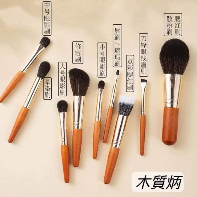 木柄迷你9支便攜化妝刷 送收納包 mini手掌大小 化妝刷具 眼影刷 腮紅刷 暈染刷 刷具套組