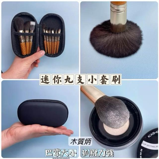 木柄迷你9支便攜化妝刷 送收納包 mini手掌大小 化妝刷具 眼影刷 腮紅刷 暈染刷 刷具套組