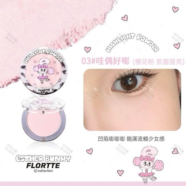 FLORTTE花洛莉亞 Bunny高光粉 艾絲樂小兔 FLORTTE x Esther Bunny 花洛莉亞 天生粉紅 高光提亮粉