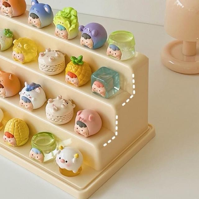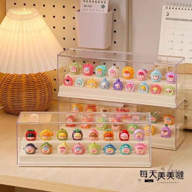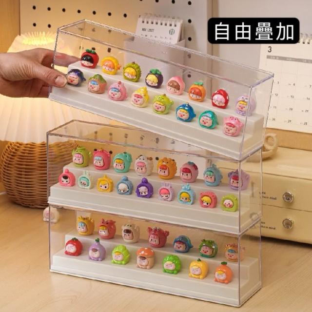 可疊加 萌粒公仔展示盒 階梯式手辦展示盒 小公仔收納盒 透明收納盒 盲盒展示櫃 泡泡瑪特展示盒 防潮防水