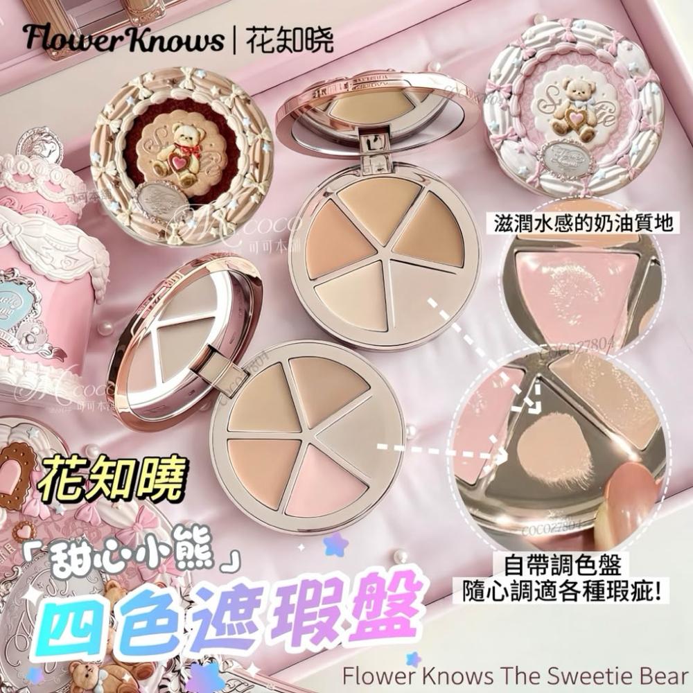 Flower Knows 花知曉甜心小熊 四色遮瑕盤 自帶調色盤 甜心小熊遮瑕盤 Flower Knows 自帶調色盤 遮瑕膏 奶油遮瑕膏 花知曉修容盤