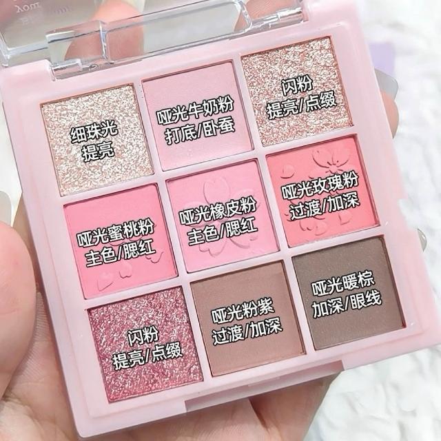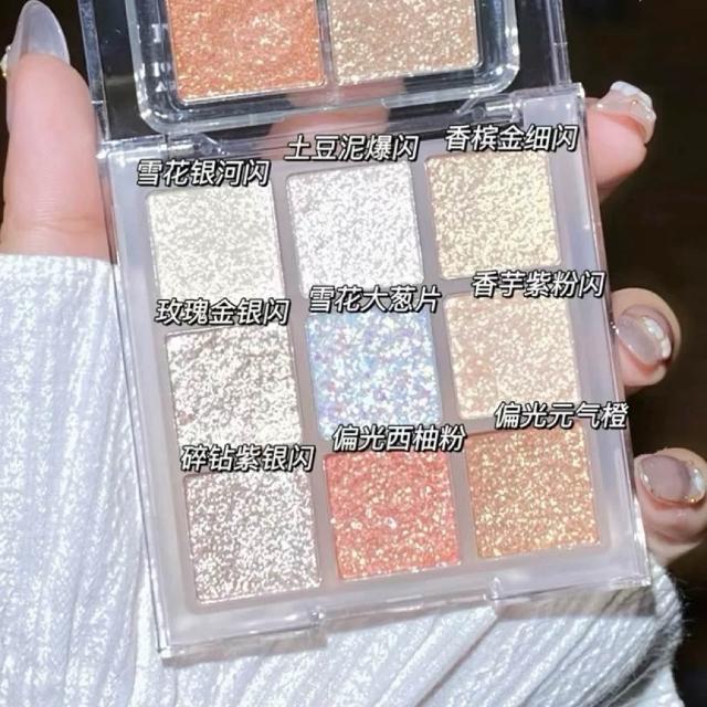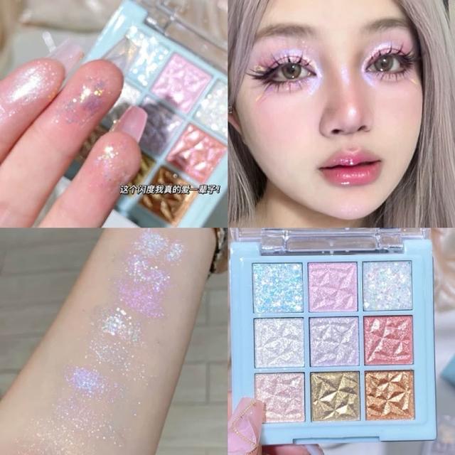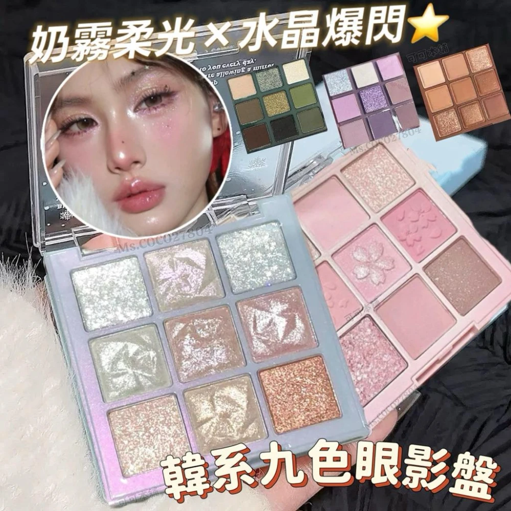 糖霜韓系 九色眼影盤 水晶閃片 高光 奶霧眼影 韓系眼妝 多功能 細閃 珠光 不飛粉 眼影盤 全臉彩妝