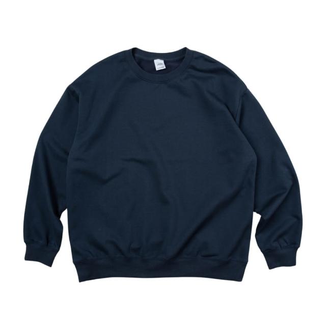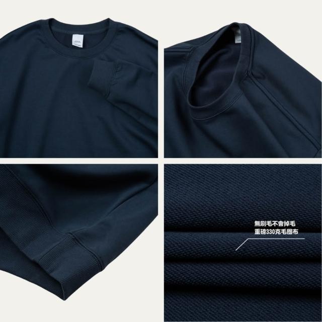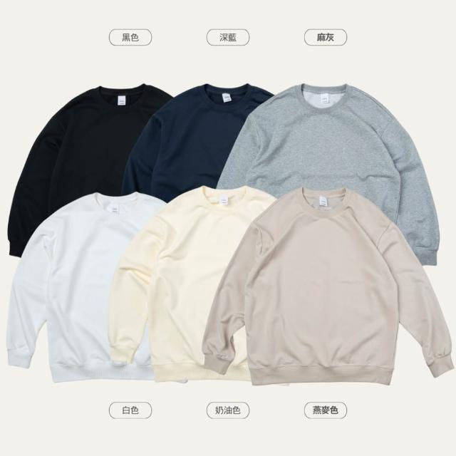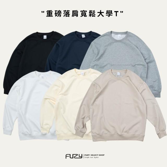 『 免運 』寬版 | 重磅 大學T 落肩 無刷毛 素面長袖 深藍 黑色 燕麥色 【 FUZY 】- A201673