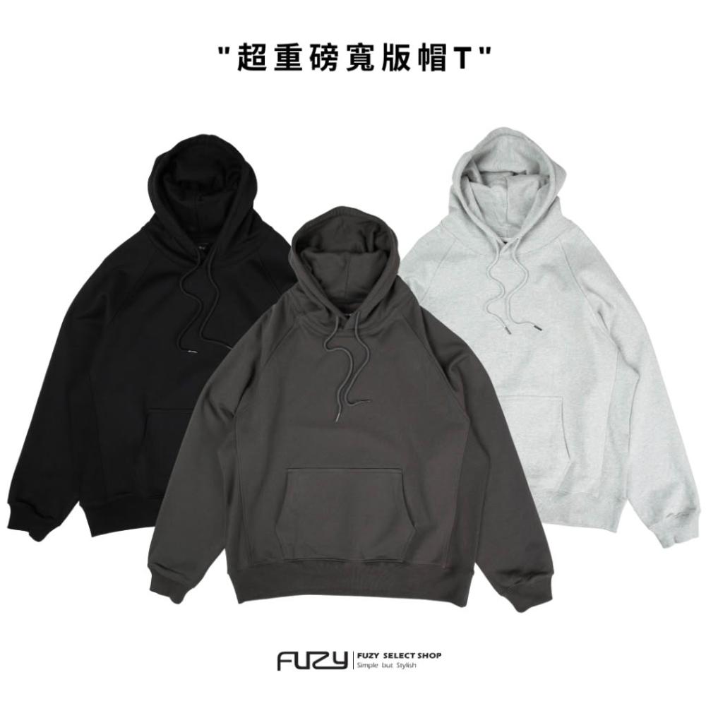現貨隔日配 SALE- WIRE 寬版 帽T 超重磅!480克 純棉 寬鬆 黑色 深灰【 FUZY 】- A201607