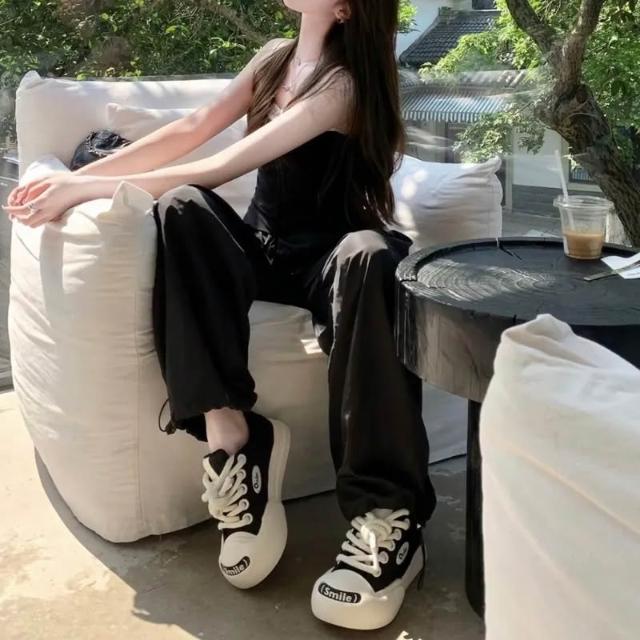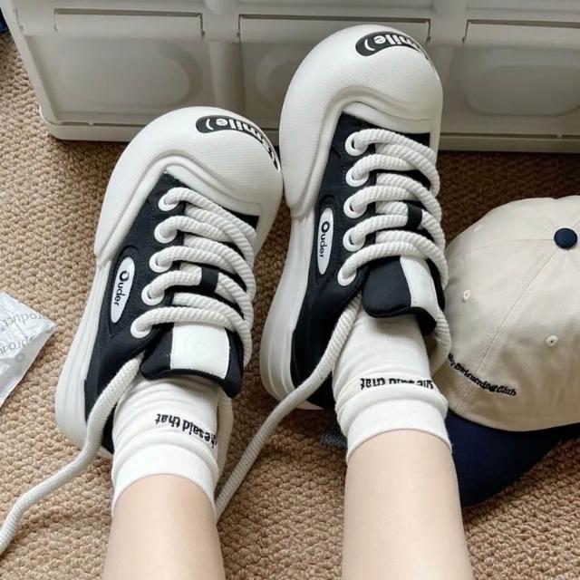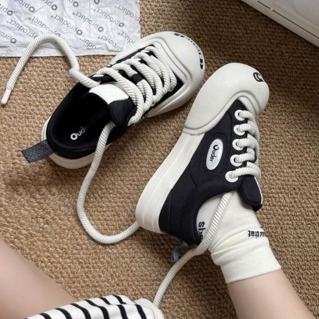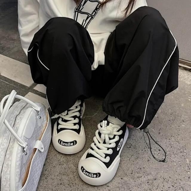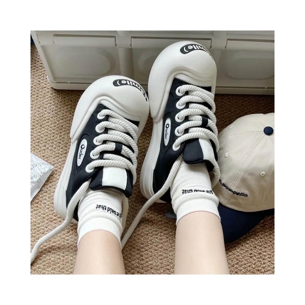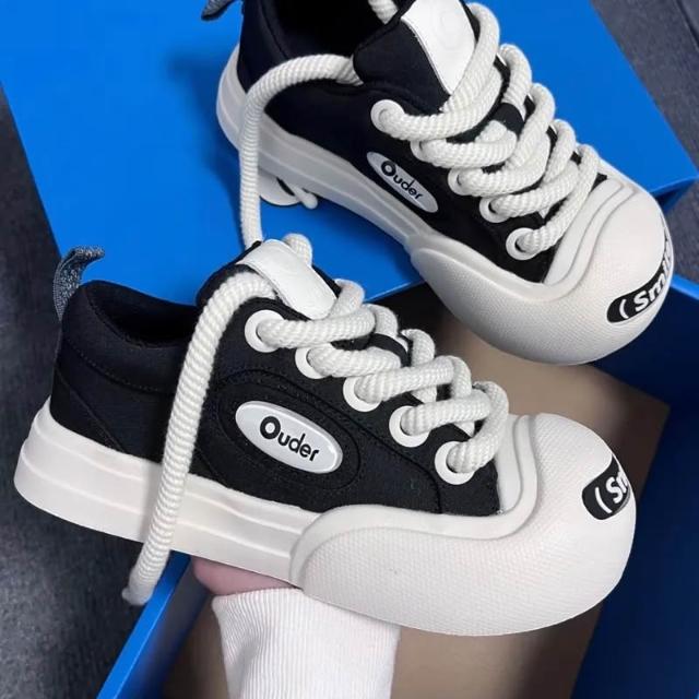 Ouder Smiler 開口笑 圓頭 厚底 低筒 帆布鞋 平民版 解構 黑白 OUD010HEI