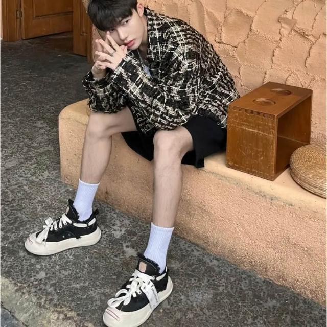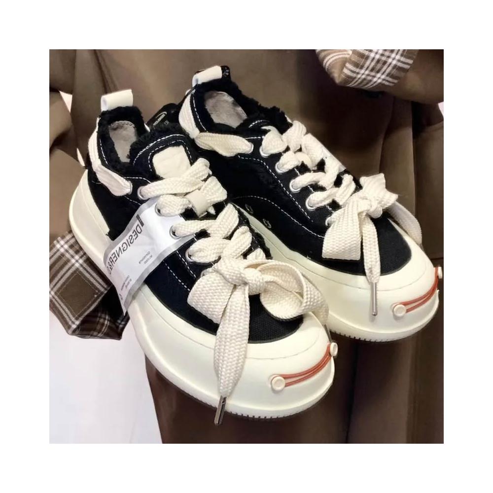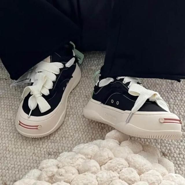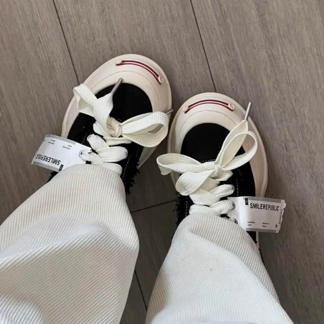 Smilerepublic 經典 開口笑 檀健次同款 低筒 粗鞋帶 厚底 帆布鞋 黑