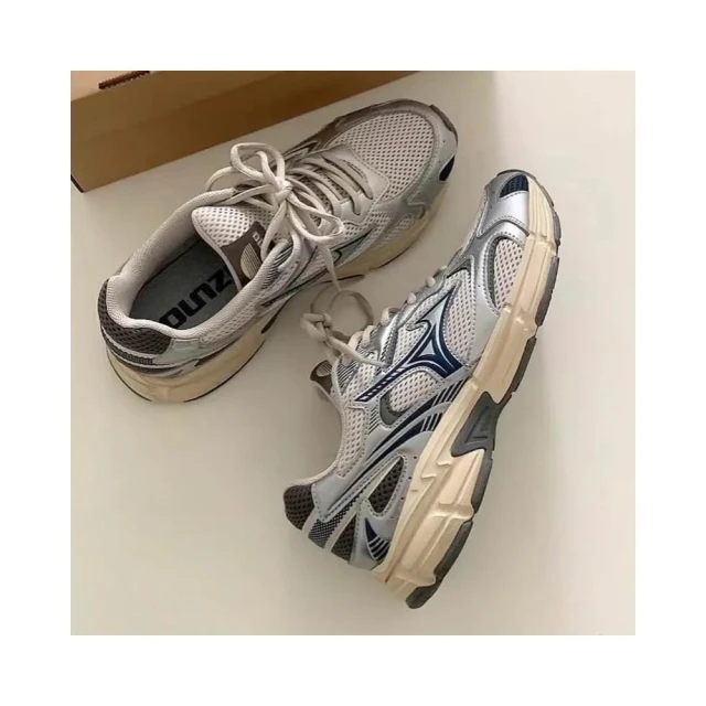 MIZUNO 美津濃Mizuno Cyclone Speed 2k 慢跑鞋 老爹鞋 網布 異材質 拼接 奶油底 銀藍 D1GH222913