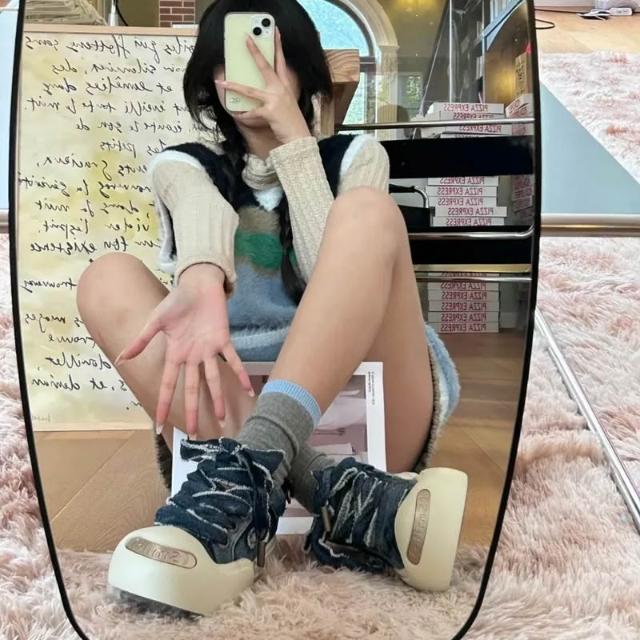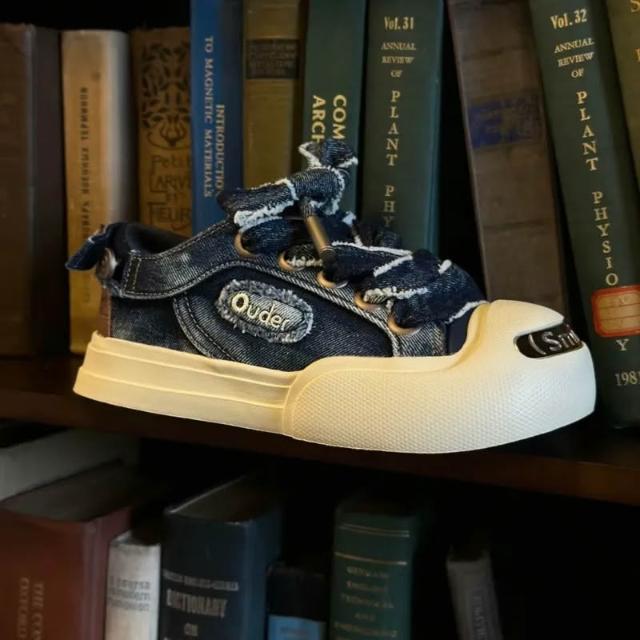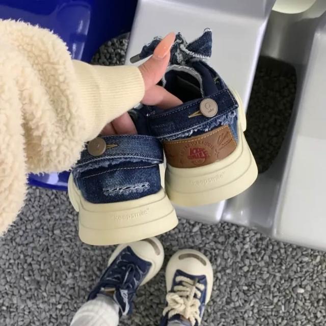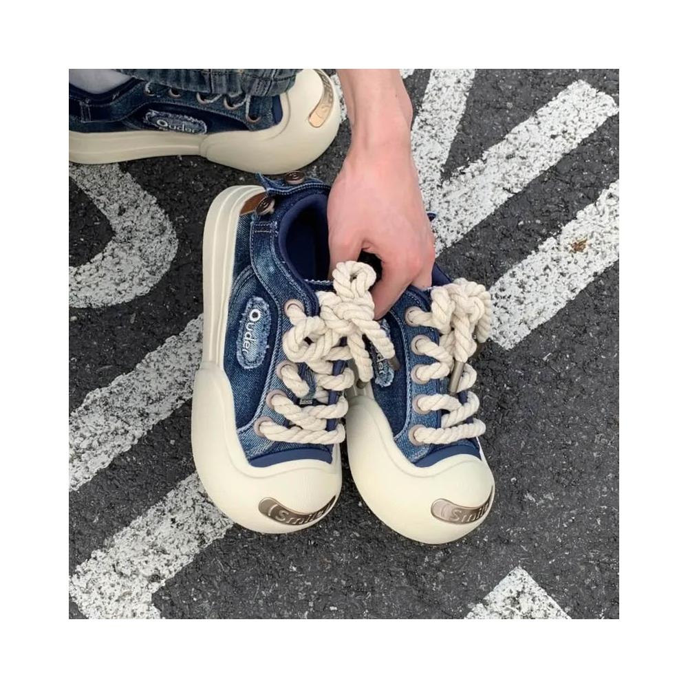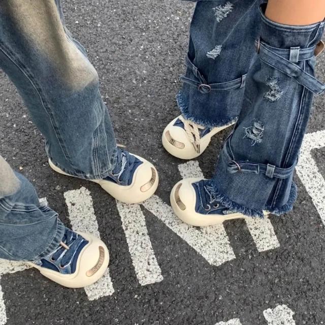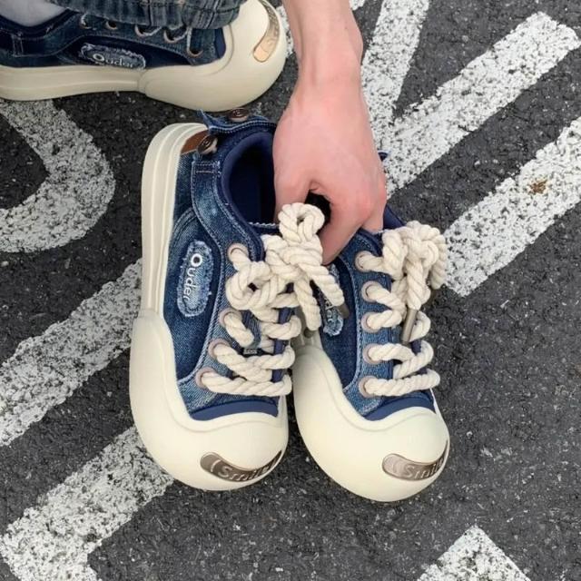 Ouder Smiler 開口笑 圓頭 厚底 低筒 帆布鞋 平民版 解構 牛仔藍