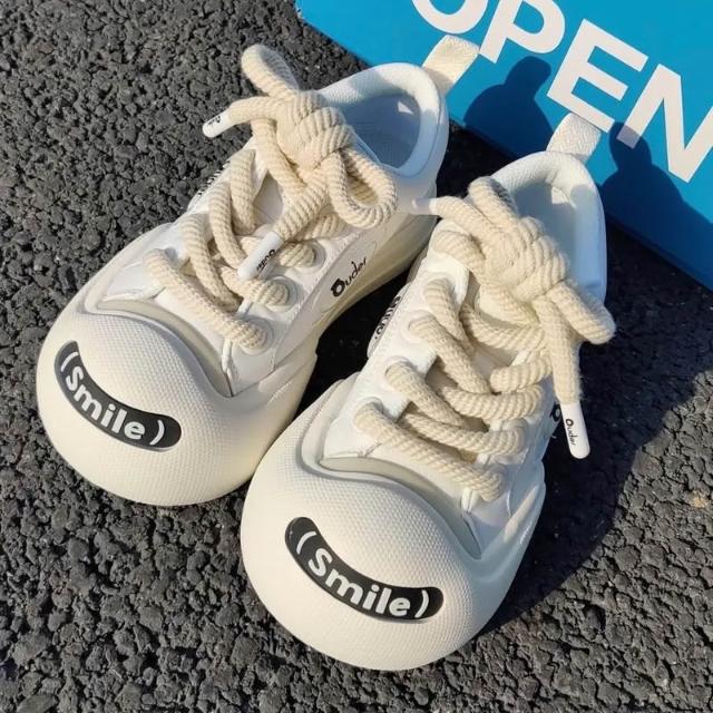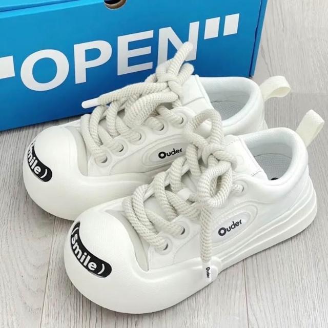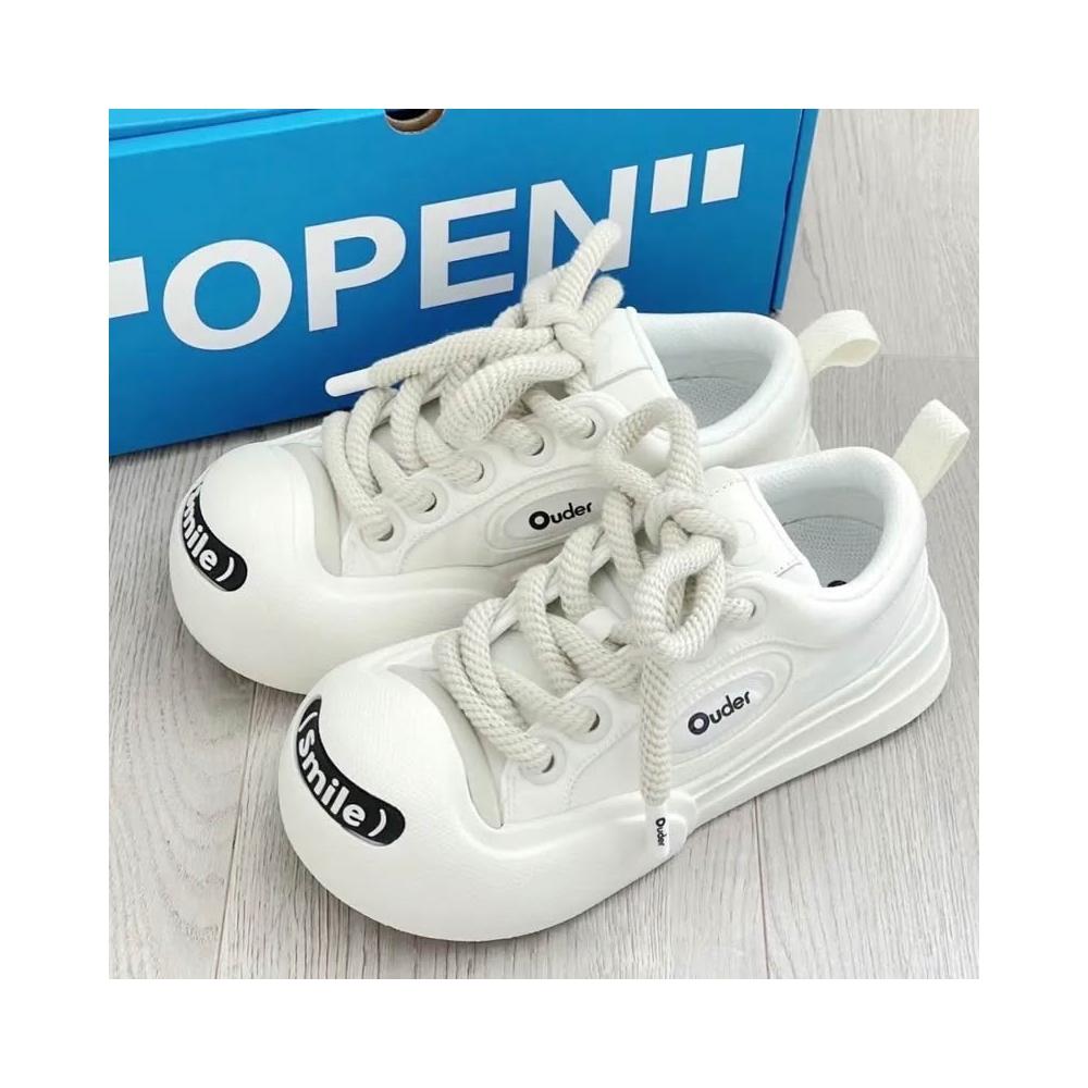 Ouder Smiler 開口笑 圓頭 厚底 低筒 帆布鞋 平民版 解構 全白