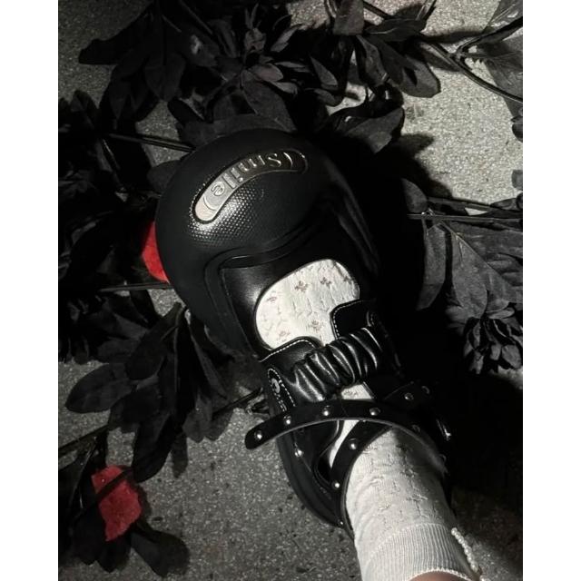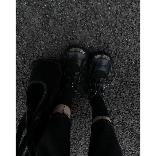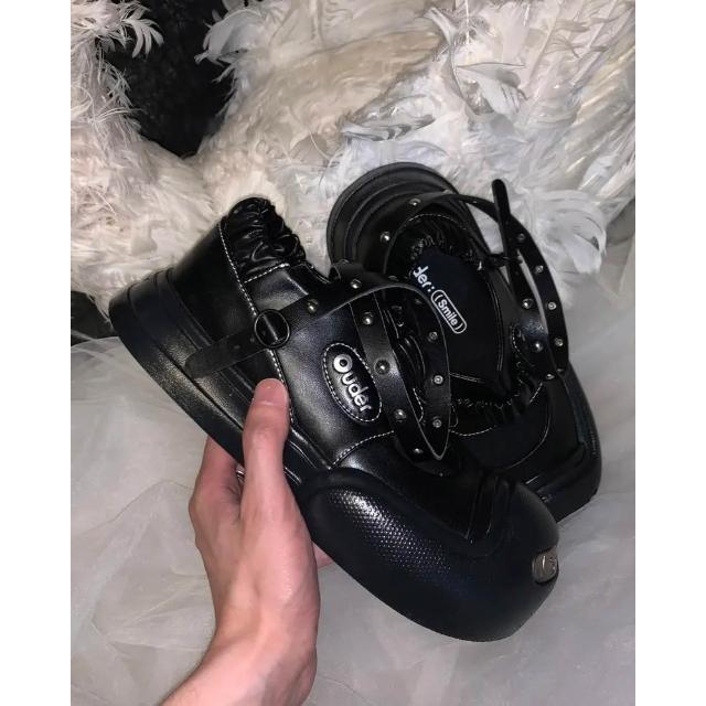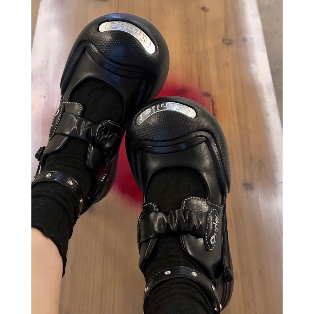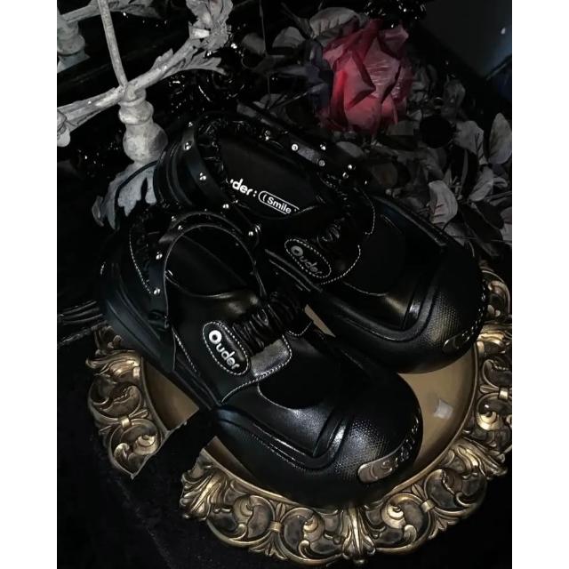 Ouder Smiler 開口笑 圓頭 厚底 綁帶可拆 帆布鞋 瑪莉珍 解構 暗夜黑
