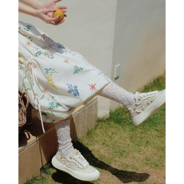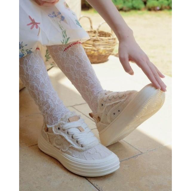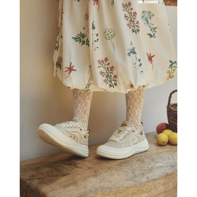 We Flower 德訓鞋 小花鞋 蕾絲 厚底 含贈品 奶白