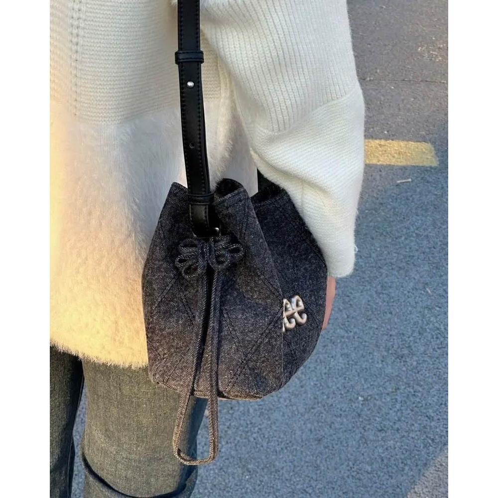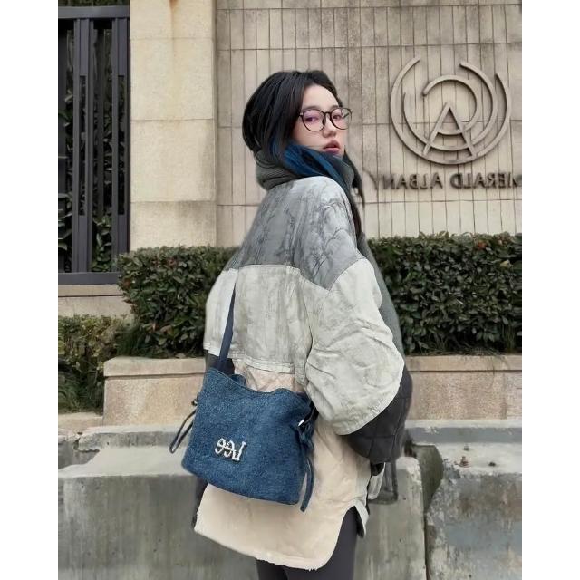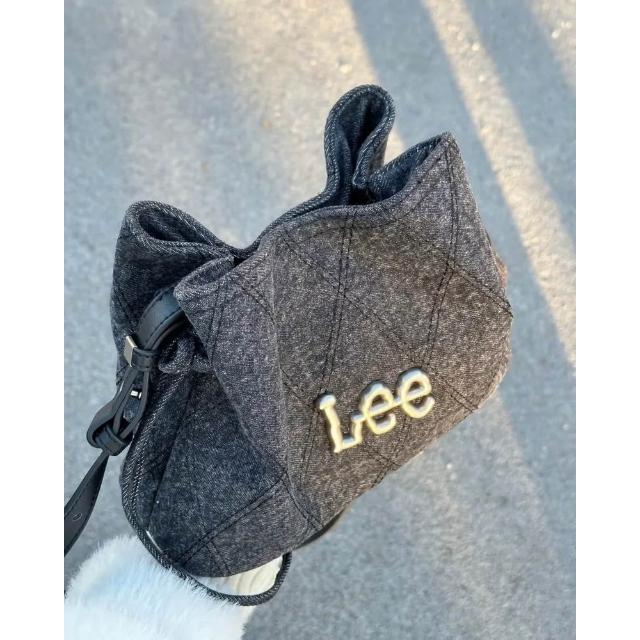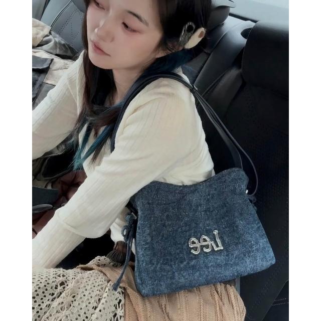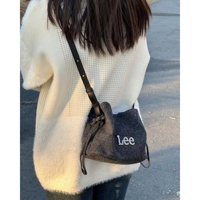 LeeLee 側背包 水洗 牛仔 花結 水桶包 2色 LE240104M