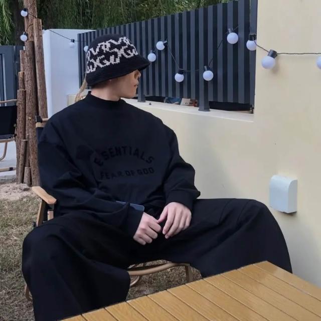 Essentials<現貨> Essentials FOG 23AW 長袖 基本款 大學Tee 環形字體 黑