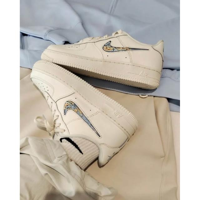 NIKE 耐吉Nike Air Force 1 GS 流沙 透明勾勾 低筒 奶白 IM6697-141
