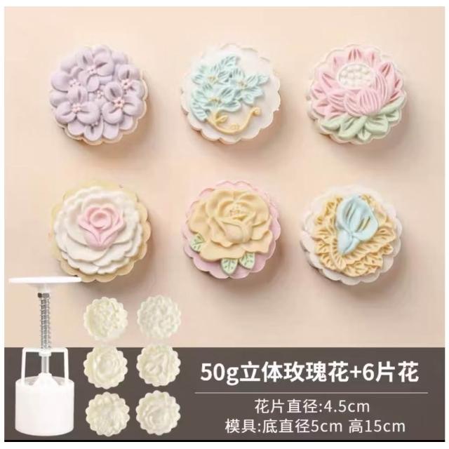 禎巧妙 台灣現貨 模具 月餅模具套裝 50g 新款 聖誕小麋鹿圓形月餅模 立體卡通 冰皮月餅模具 廣式月餅模具