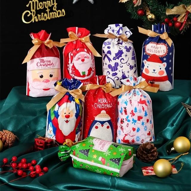 禎巧妙 台灣現貨 聖誕節抽繩束口袋 雪花酥牛軋糖包裝袋 牛軋餅餅乾包裝袋 兒童節糖果包裝袋 聖誕禮物包裝 聖誕創意包裝 平安蘋果包