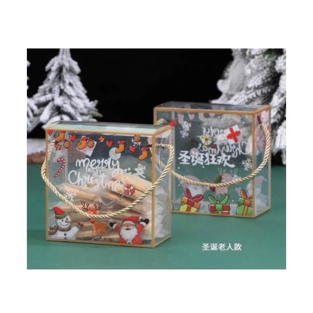 禎巧妙 透明手提盒(買10送貼紙)伴手禮盒 聖誕包裝盒 聖誕節手提透明盒 雪花酥糯米船曲奇餅乾牛軋糖奶枣烘焙西點包裝盒