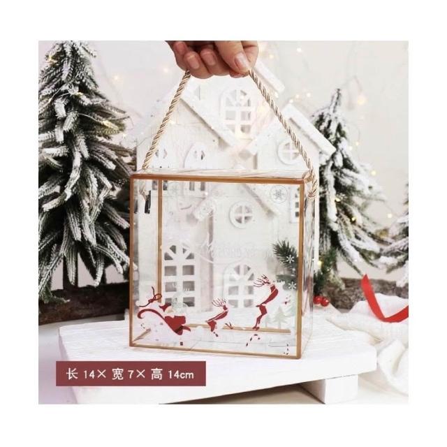 禎巧妙 透明手提盒(買10送貼紙)伴手禮盒 聖誕包裝盒 聖誕節手提透明盒 雪花酥糯米船曲奇餅乾牛軋糖奶枣烘焙西點包裝盒
