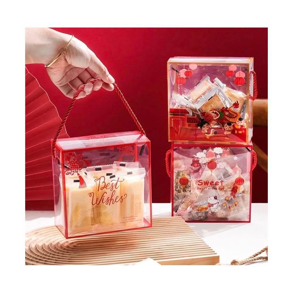 禎巧妙 透明手提盒(買10送貼紙)伴手禮盒 聖誕包裝盒 聖誕節手提透明盒 雪花酥糯米船曲奇餅乾牛軋糖奶枣烘焙西點包裝盒