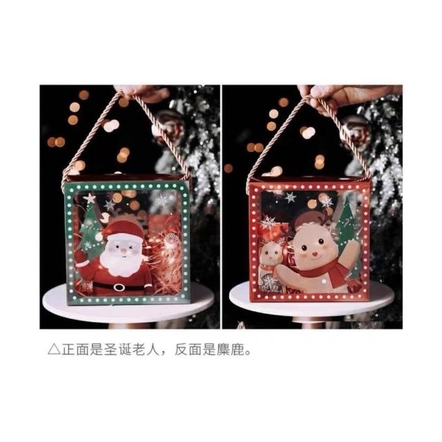 禎巧妙 透明手提盒(買10送貼紙)伴手禮盒 聖誕包裝盒 聖誕節手提透明盒 雪花酥糯米船曲奇餅乾牛軋糖奶枣烘焙西點包裝盒