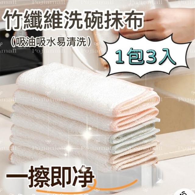 1包3入竹纖維抹布 雙層抹布 植物纖維洗碗布 不吸油不掉毛洗碗布 家用百潔布 廚房吸水吸油雙層抹布