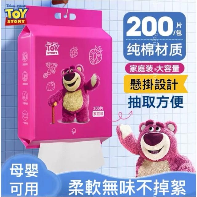 💯草莓熊洗臉巾 一次性純棉洗臉巾 熊抱哥毛巾 200抽 潔面 卸妝美容巾 棉柔巾 加厚加大 抽取式 家庭裝