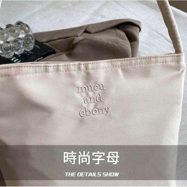 韓國mucu and ebony 5色 時尚刺繡高彈防水尼龍手提包 百搭休閒腋下包 單肩女包