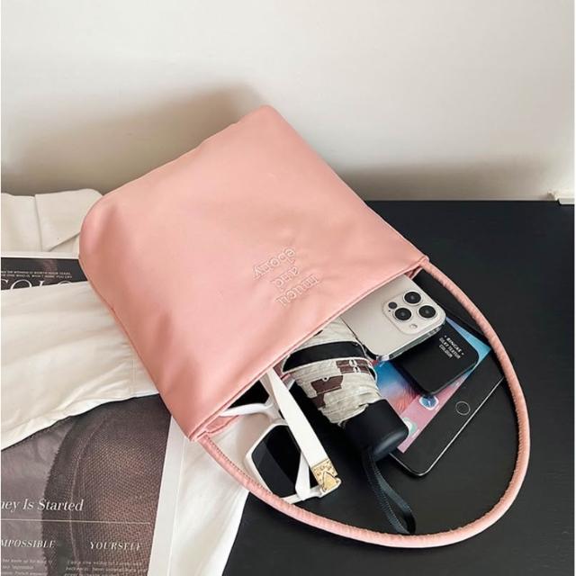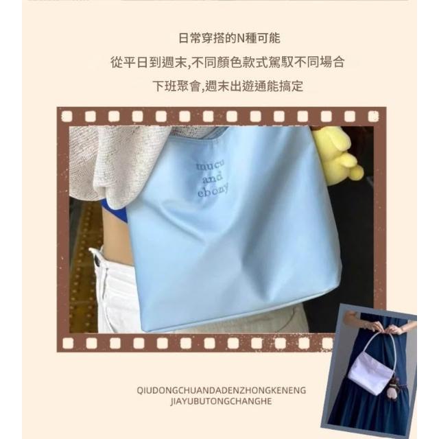 韓國mucu and ebony 5色 時尚刺繡高彈防水尼龍手提包 百搭休閒腋下包 單肩女包