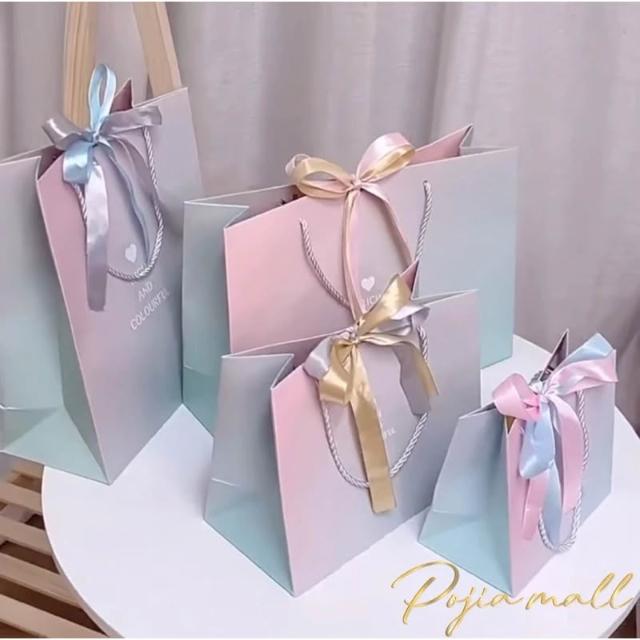 金色愛心💛ins 風禮品袋 紙袋 禮物袋 絲帶蝴蝶結包裝 送禮 袋子 提袋 包裝袋紙袋 禮物袋 禮物包裝 聖誕節禮物袋
