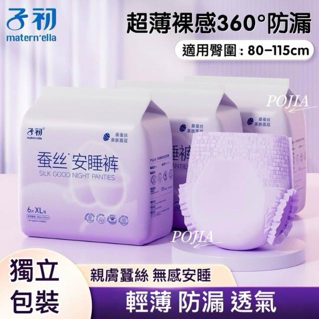 蠶絲安睡褲 (6片/包) 衛生棉褲 防漏護膚 褲型衛生棉 安睡褲 晚安褲 安心衛生棉 成人褲 衛生棉 產褥墊 產後褲