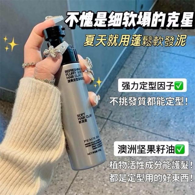 PEACH JO+清爽蓬鬆定型軟髮泥100g 清爽不油膩 日常造型 定型頭髮 男士 造型 蓬鬆立體 控油 髮泥 重塑力