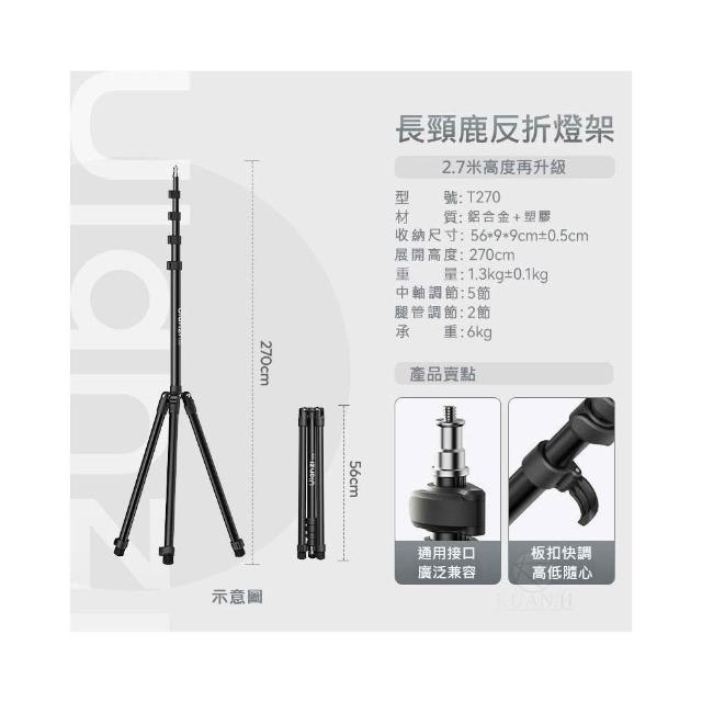 Ulanzi 優籃子優籃子 Ulanzi T270 2.7M 長頸鹿燈架 6KG承重 鋁合金攝影燈架 反折便攜 棚拍外拍穩定支撐