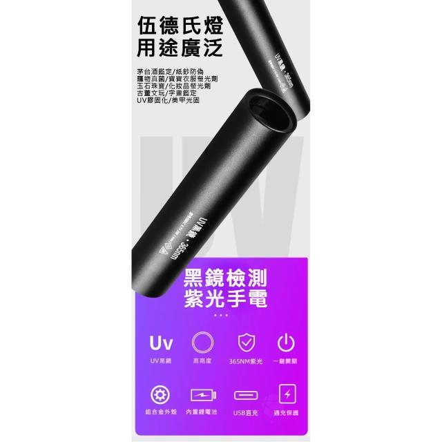 UV黑鏡手電筒 驗鈔燈 紫光驗鈔燈 365nm 伍德氏燈 可充電 檢驗螢光防偽 驗鈔燈 驗鈔筆 螢光劑檢測 貓癬