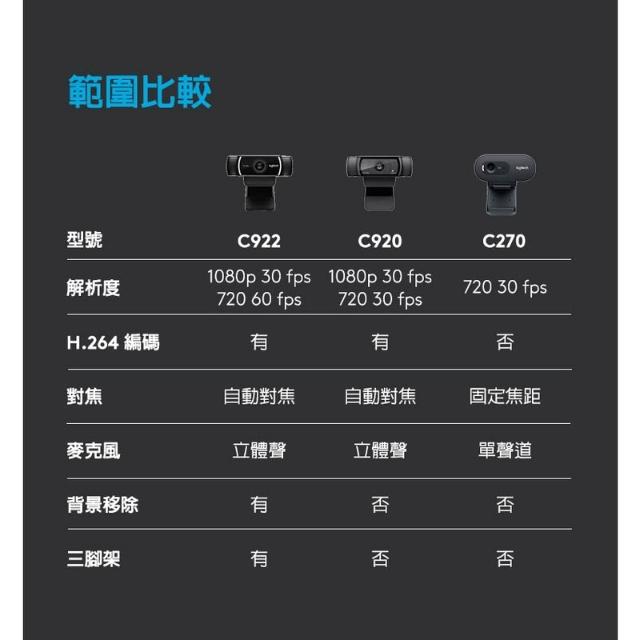 Logitech 羅技羅技 Logitech C922 Pro 現貨開發票送線貼隱私蓋 羅技原廠 台灣出貨 附腳架 視訊鏡頭 Webcam