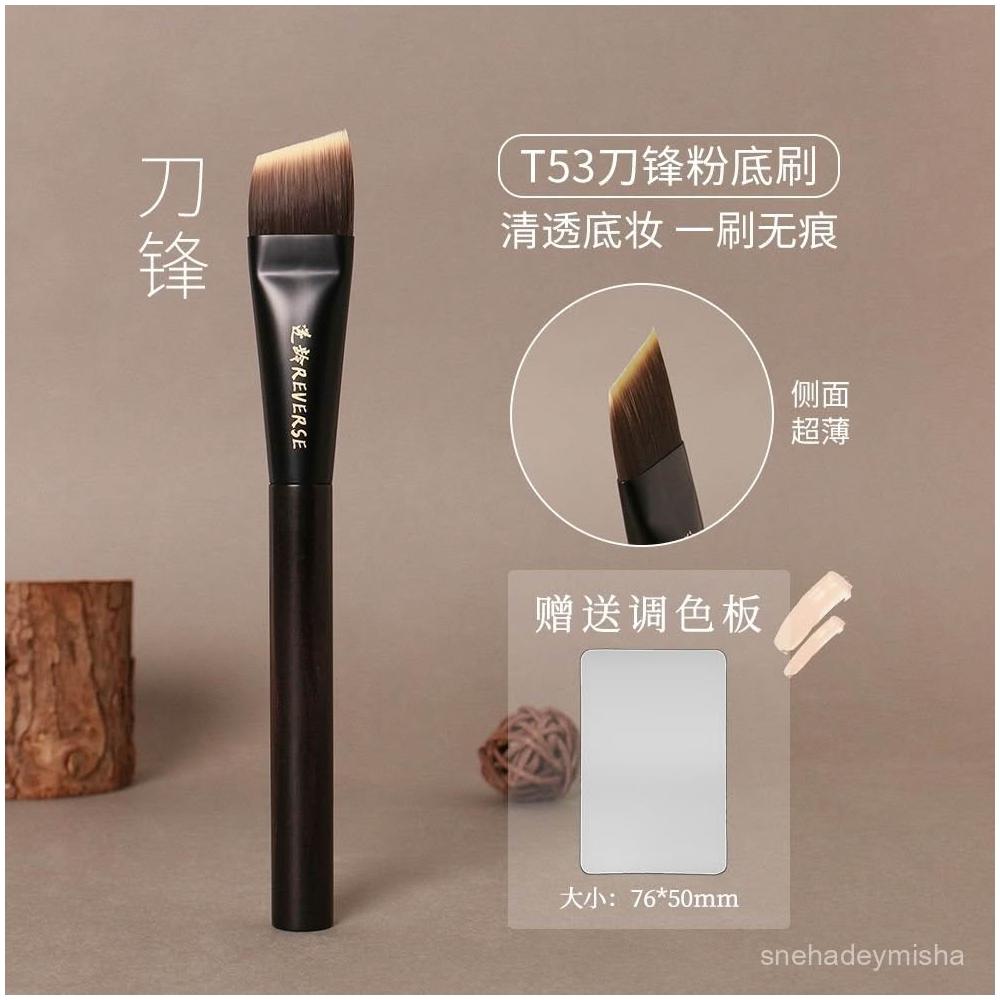 文文精品 逆齡T53檀木刀鋒粉底刷一字型扁頭無痕平頭粉底刷不喫粉化妝刷子